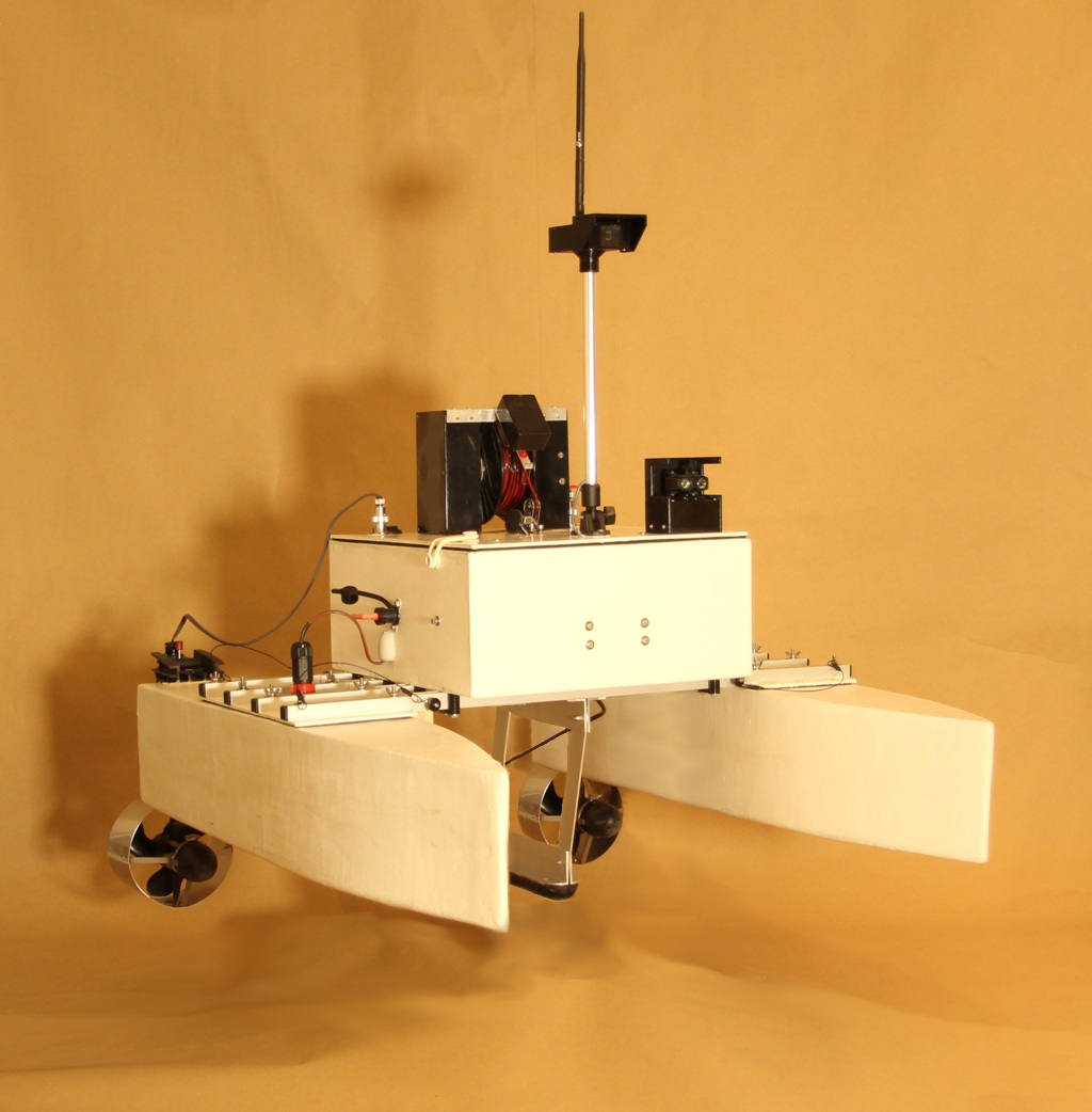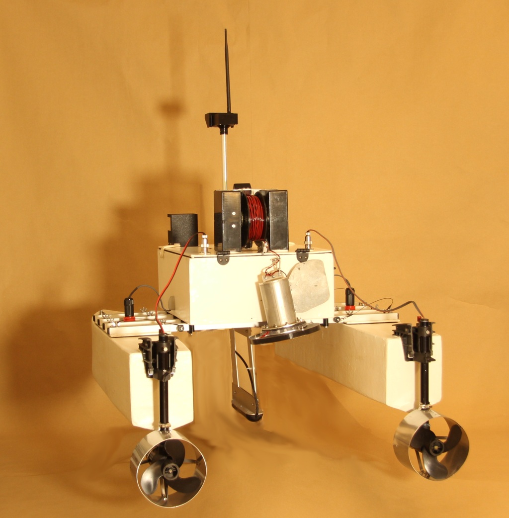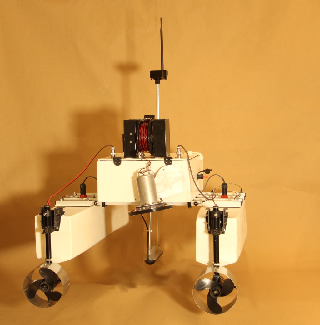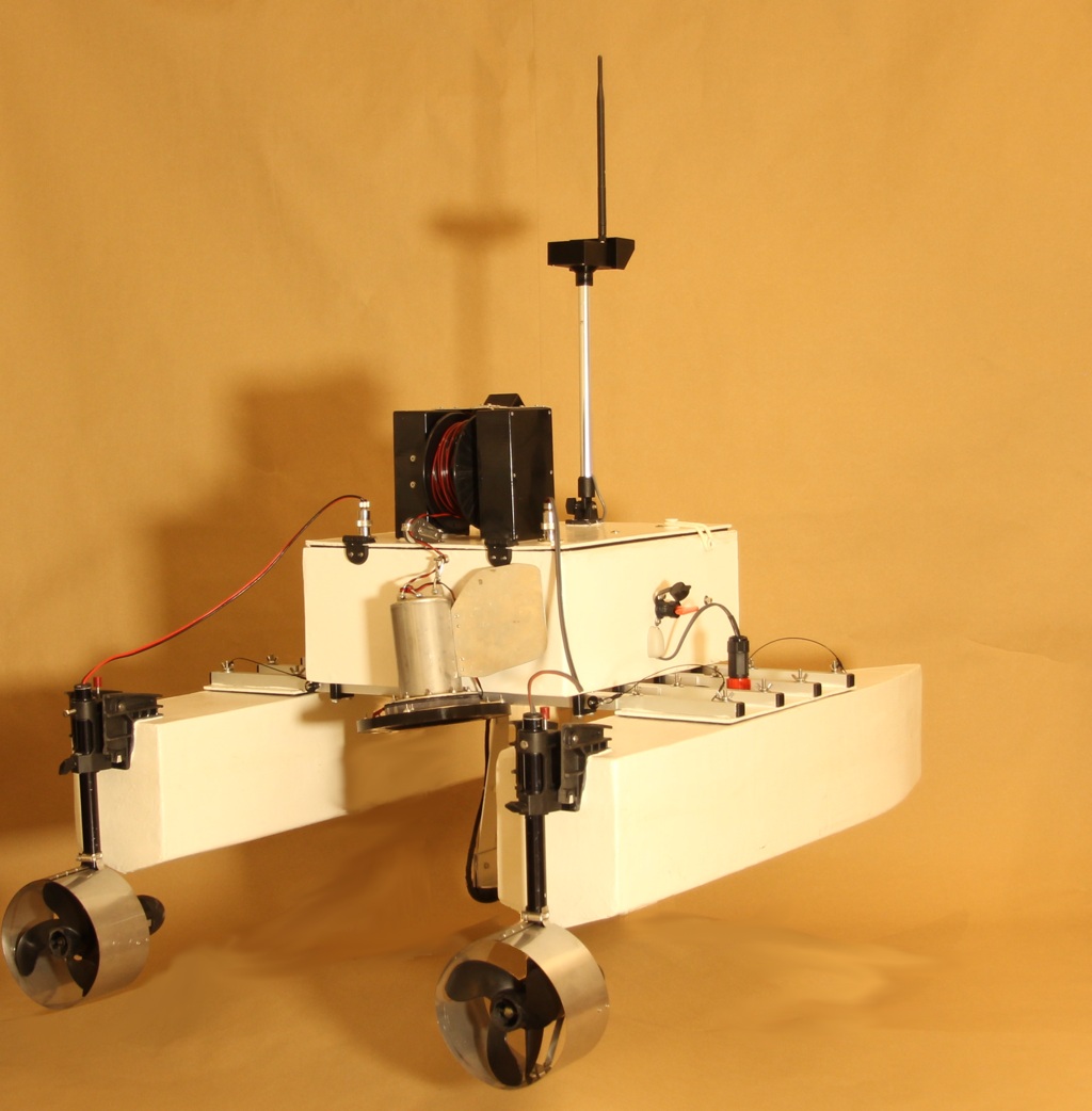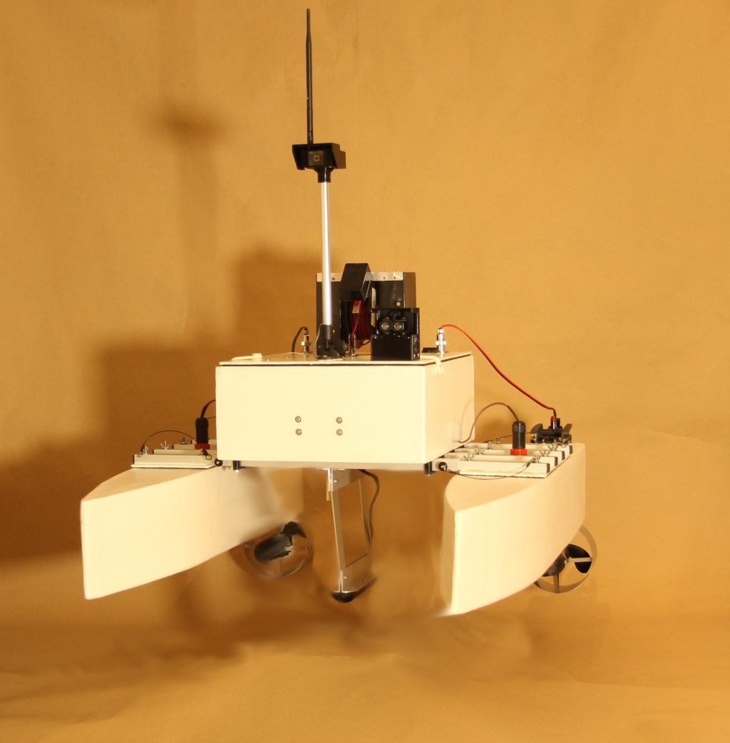 The iMAS Drone is a cost-effective autonomous marine drone for underwater search and mapping. It is equipped with side-scan sonar and an underwater drop camera. The drone comes with a comprehensive and user-friendly software package for mission planning and data viewing. The camera and sonar data are streamed to and stored by the base station software using a 2.4GHz Wi-Fi connection. The drone is 1 meter long, weighs about 34 kilograms and is portable by one or two people. The underwater camera can be lowered into water to view any points of interest found in the sonar data. The side-scan sonar data is displayed on the map and can be exported as a 3D-model. |
