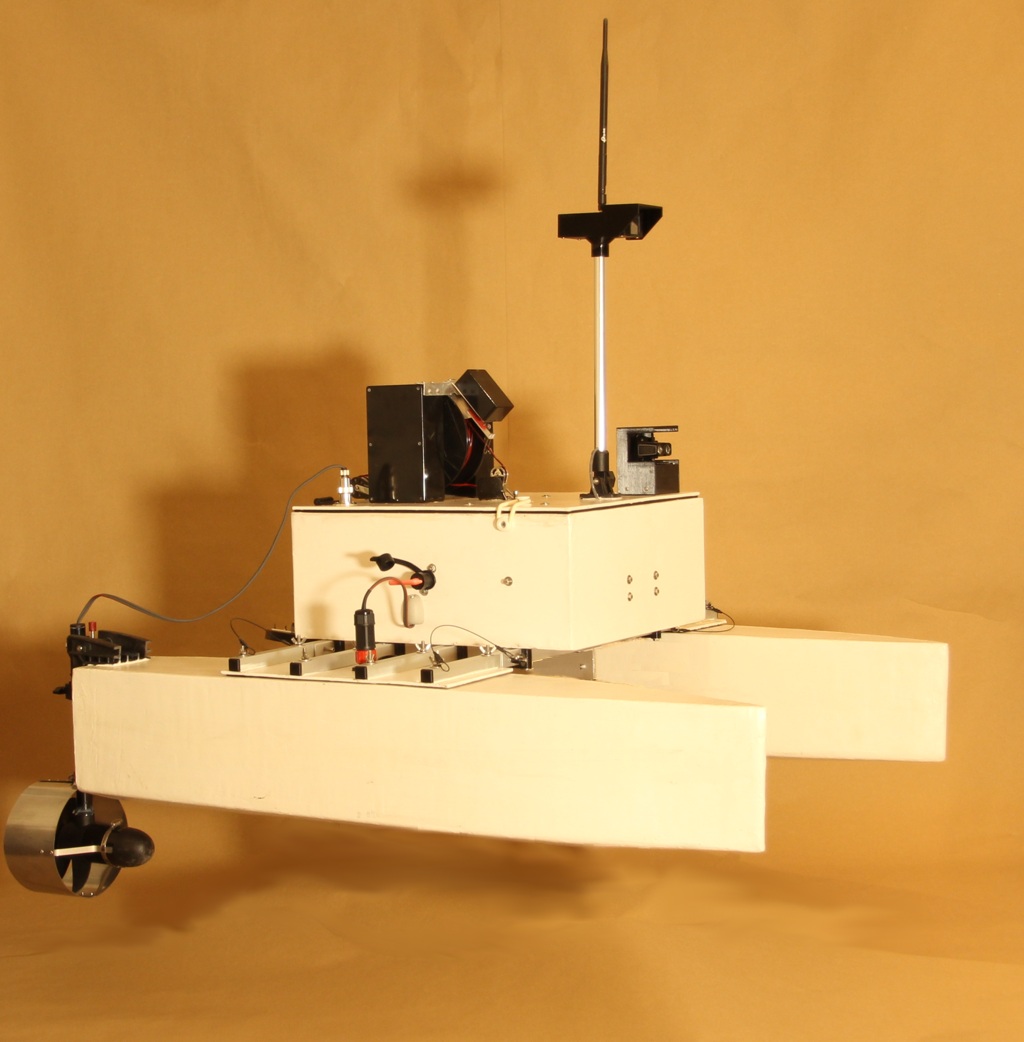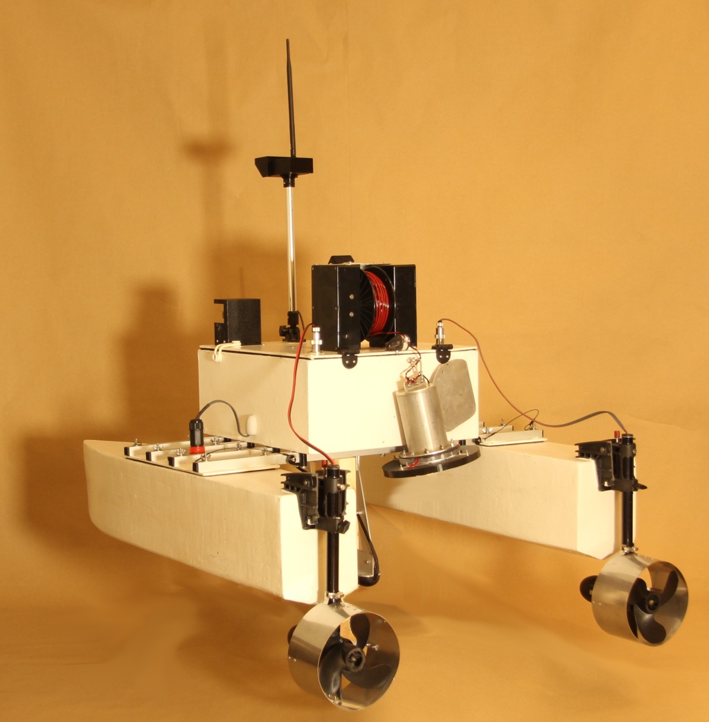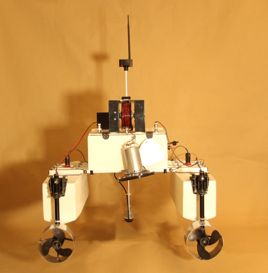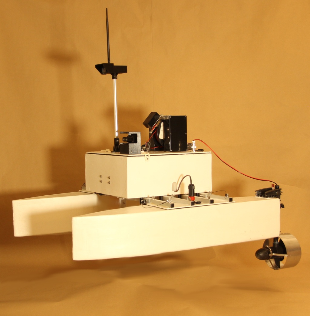 The iMAS Drone is a cost-effective autonomous marine drone for underwater search and mapping. It is equipped with side-scan sonar and an underwater drop camera. The drone comes with a comprehensive and user-friendly software package for mission planning and data viewing. The camera and sonar data are streamed to and stored by the base station software using a 2.4GHz Wi-Fi connection. The drone is 1 meter long, weighs about 34 kilograms and is portable by one or two people. The underwater camera can be lowered into water to view any points of interest found in the sonar data. The side-scan sonar data is displayed on the map and can be exported as a 3D-model. |