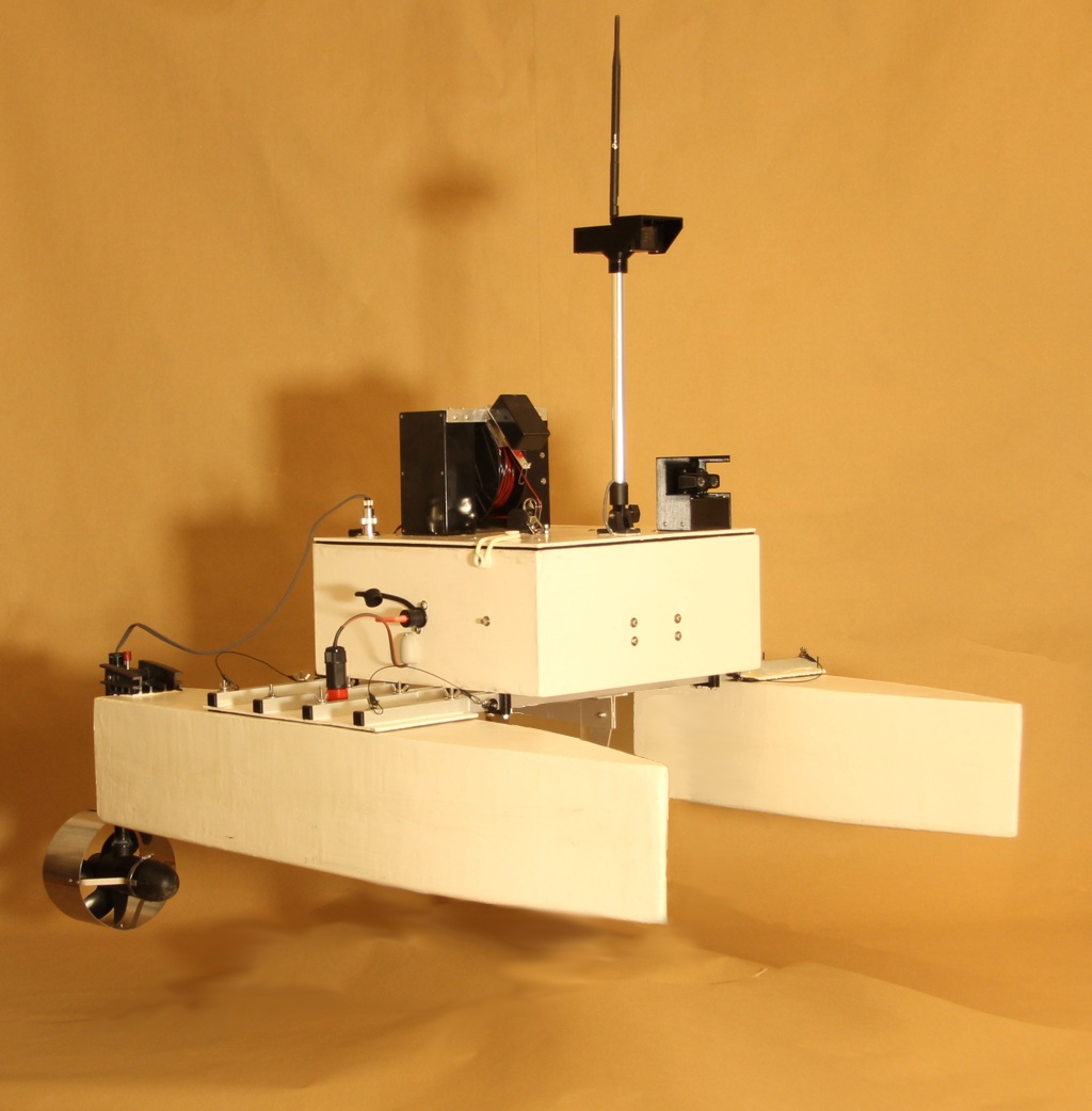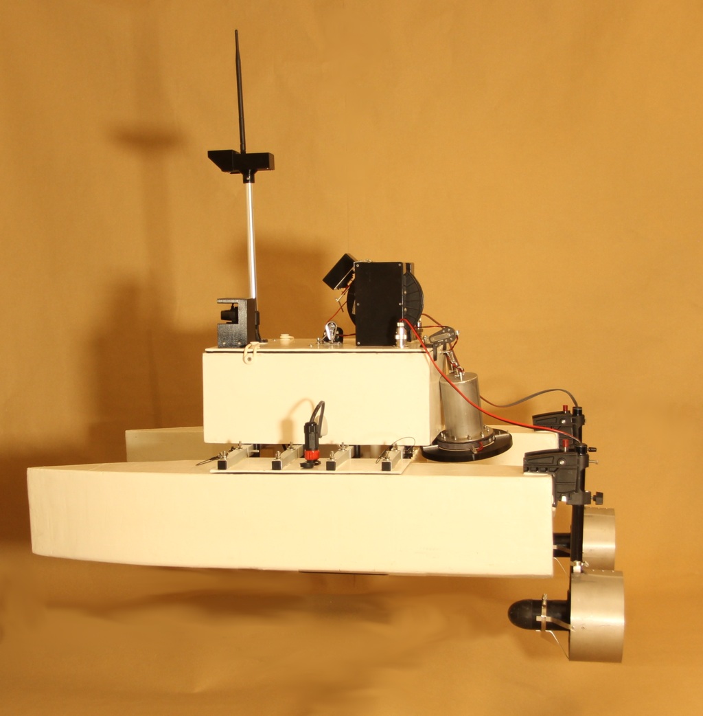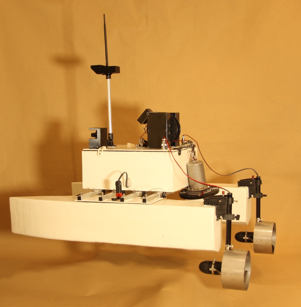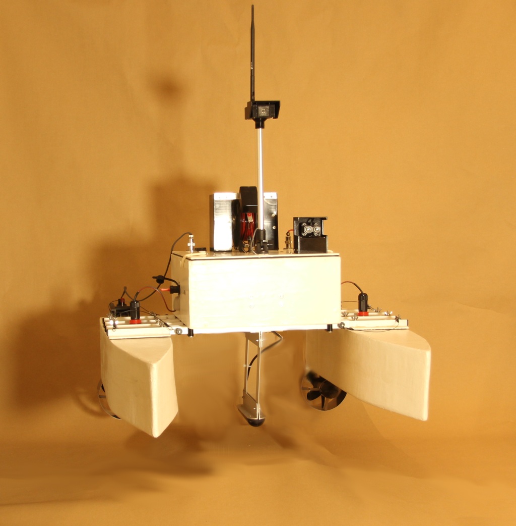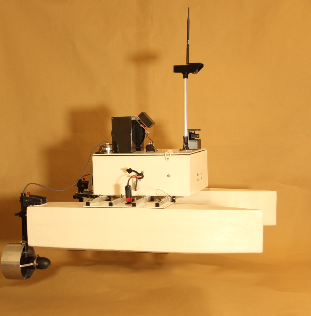 The iMAS Drone is a cost-effective autonomous marine drone for underwater search and mapping. It is equipped with side-scan sonar and an underwater drop camera. The drone comes with a comprehensive and user-friendly software package for mission planning and data viewing. The camera and sonar data are streamed to and stored by the base station software using a 2.4GHz Wi-Fi connection. The drone is 1 meter long, weighs about 34 kilograms and is portable by one or two people. The underwater camera can be lowered into water to view any points of interest found in the sonar data. The side-scan sonar data is displayed on the map and can be exported as a 3D-model. |