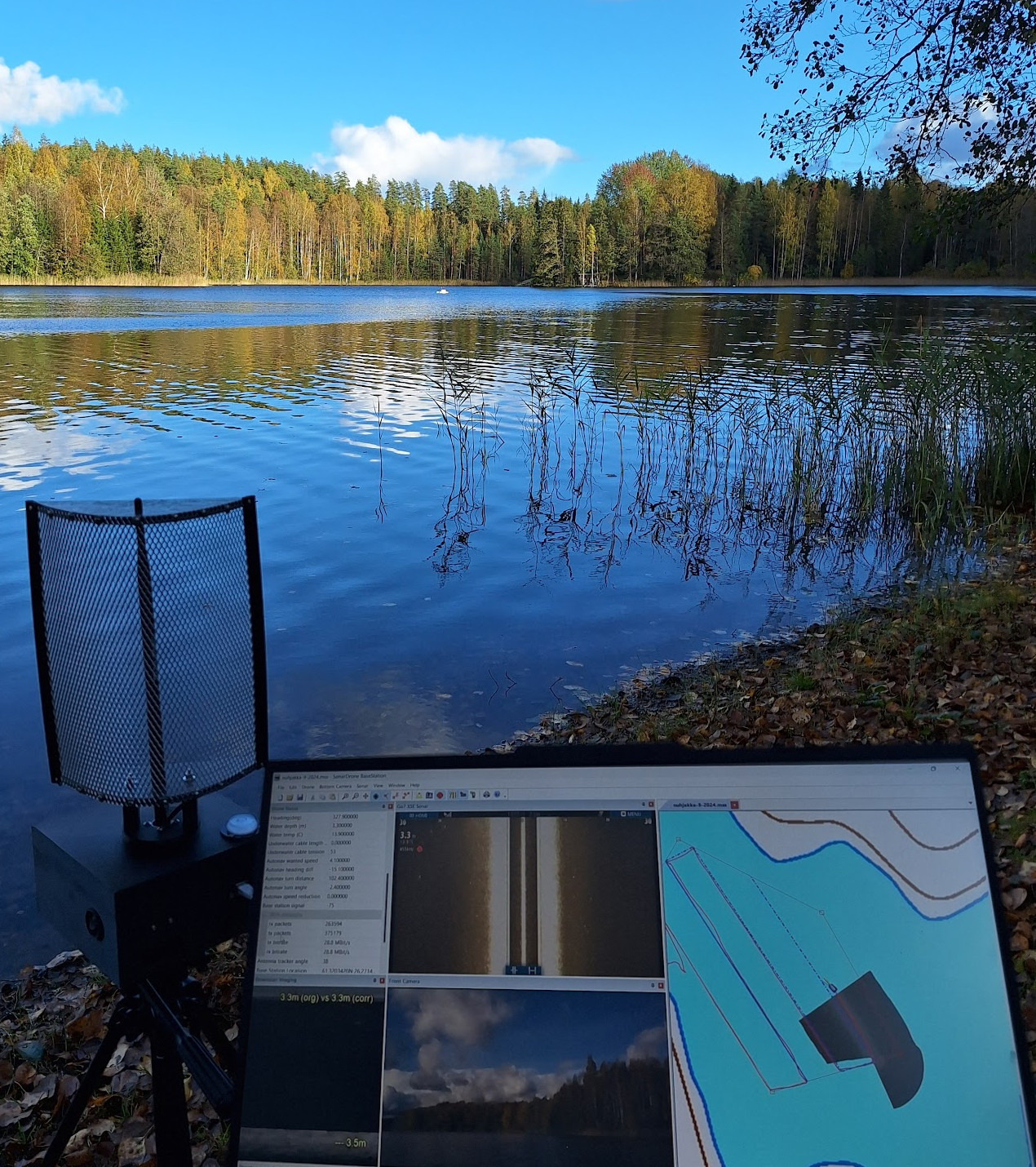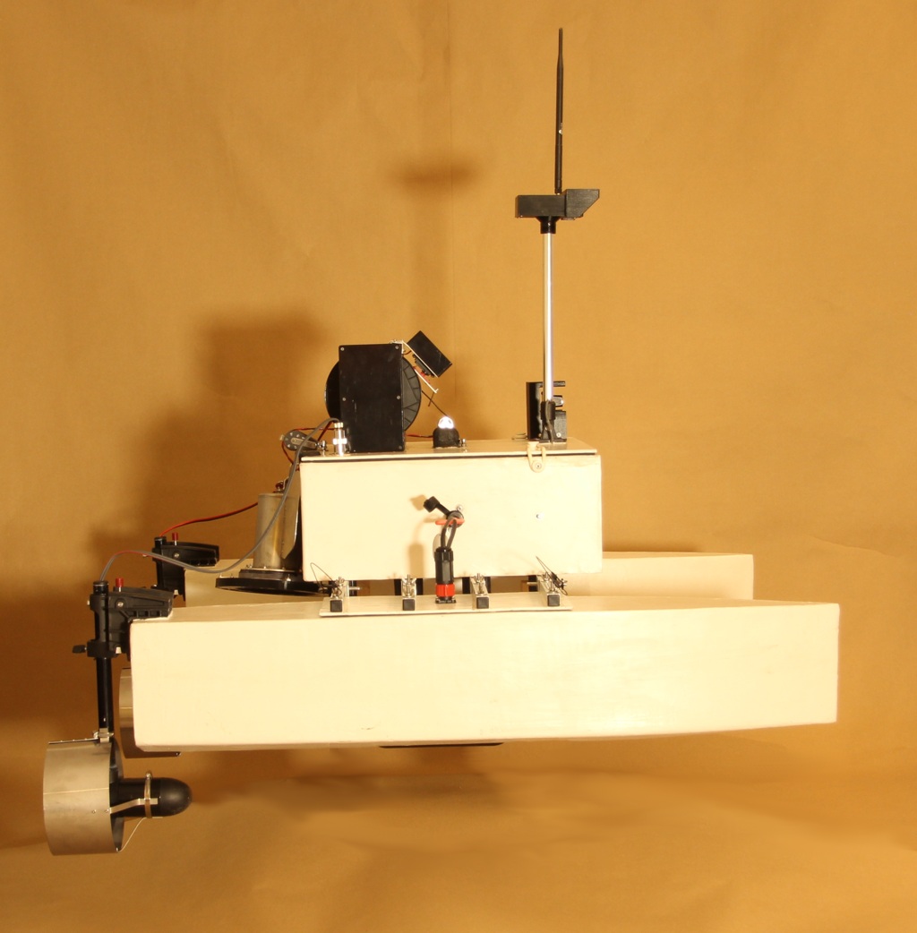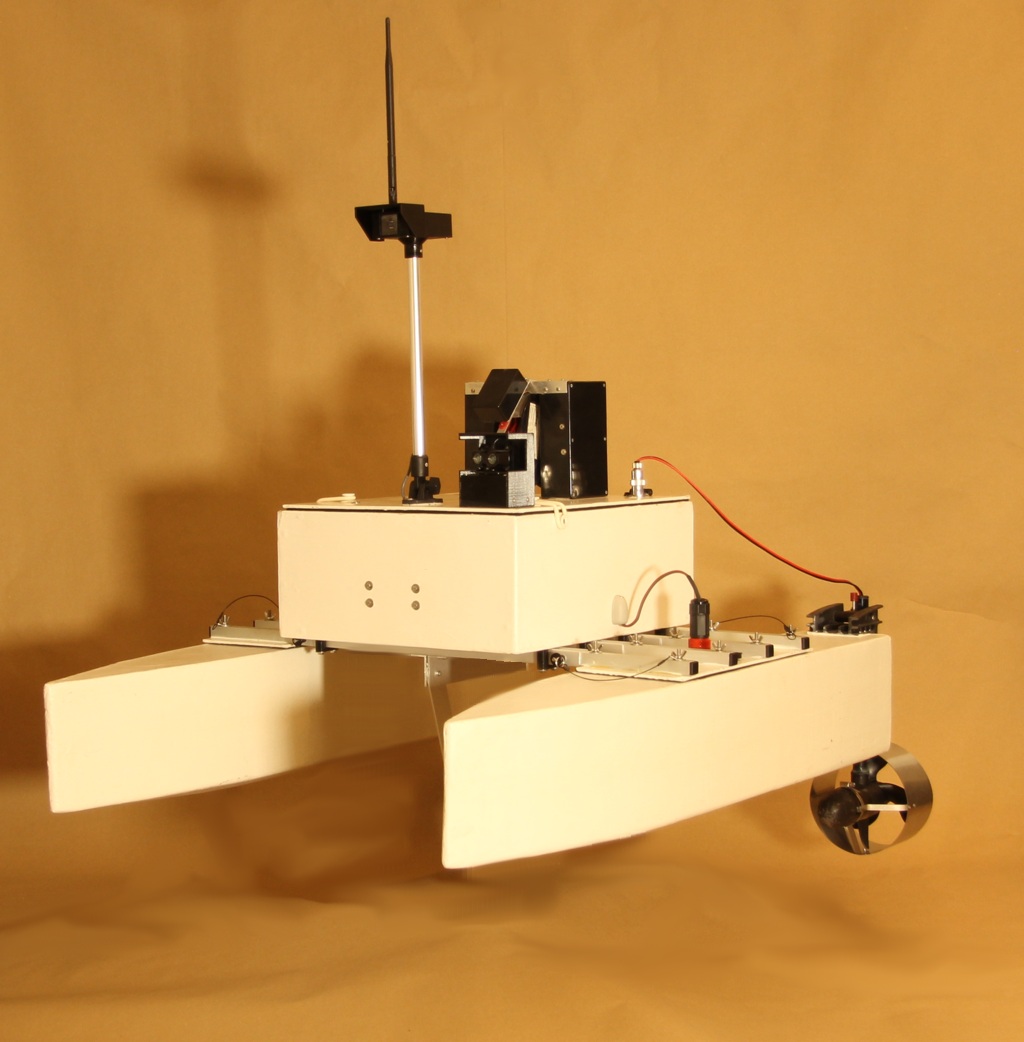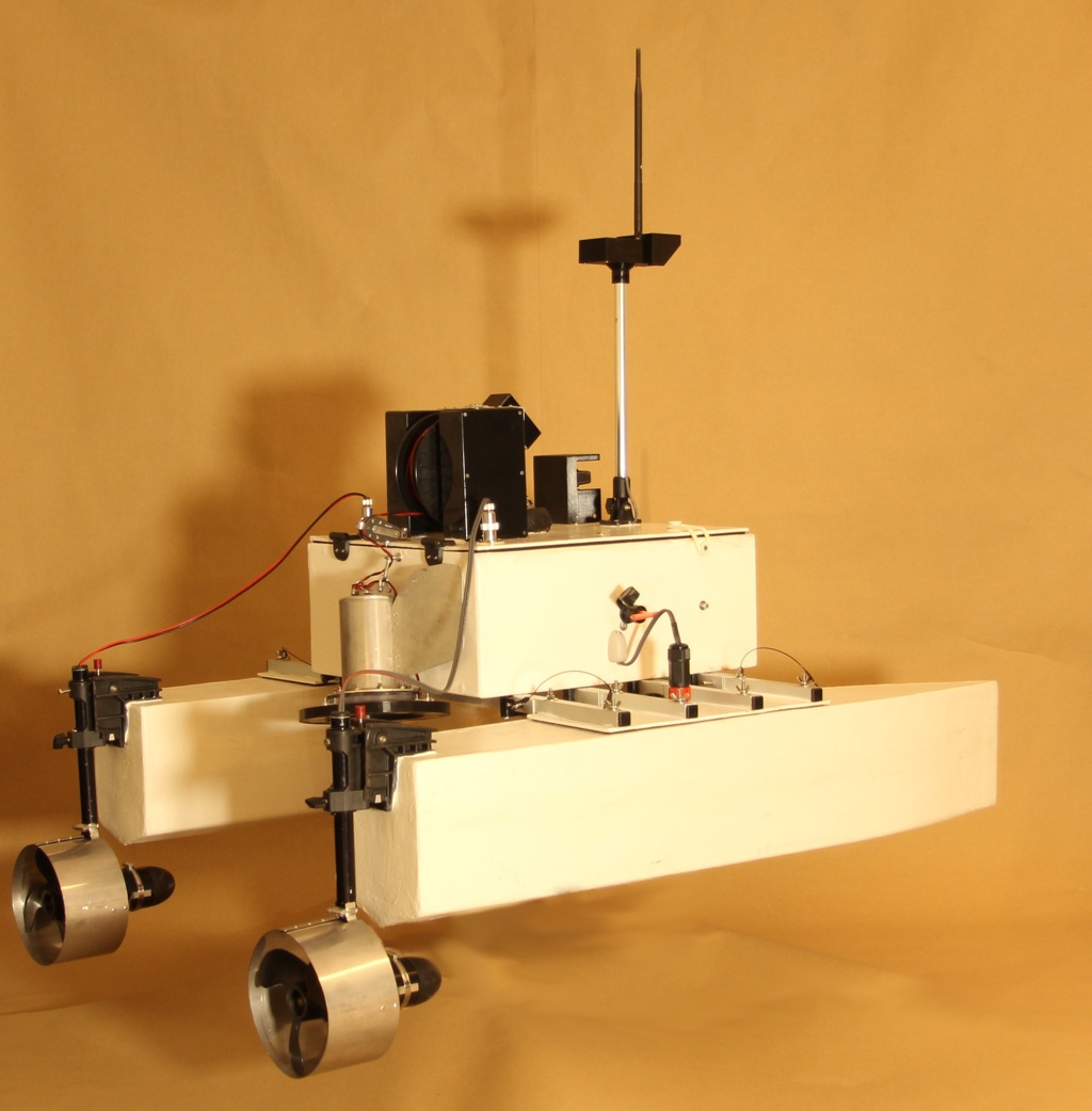 The iMAS Drone is a cost-effective autonomous marine drone for underwater search and mapping. It is equipped with side-scan sonar and an underwater drop camera. The drone comes with a comprehensive and user-friendly software package for mission planning and data viewing. The camera and sonar data are streamed to and stored by the base station software using a 2.4GHz Wi-Fi connection. The drone is 1 meter long, weighs about 34 kilograms and is portable by one or two people. The underwater camera can be lowered into water to view any points of interest found in the sonar data. The side-scan sonar data is displayed on the map and can be exported as a 3D-model. |
